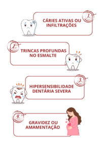 Nessas situações, precisamos primeiro tratar as condições existentes para que o clareamento seja seguro.
